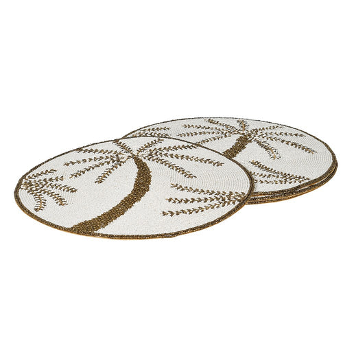 Set Of 4 Beaded Gold Palm Placemats