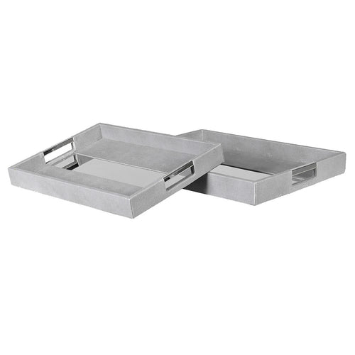 Set Of 2 Silver Trim Shagreen Trays