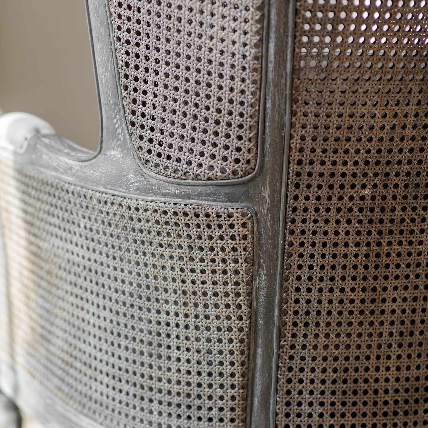 The Barton Wingback Bergère Armchair exemplifies refined craftsmanship with its distinctive high back and intricately woven cane panels set within a weathered wooden frame. This classically proportioned piece combines structural elegance with exceptional comfort, featuring generously cushioned seating that encourages extended relaxation. The wingback design provides both visual sophistication and practical support, making it equally suited to a dedicated reading space, formal living room, or bedroom sanctuary. A versatile investment that seamlessly bridges traditional aesthetics with contemporary comfort requirements.