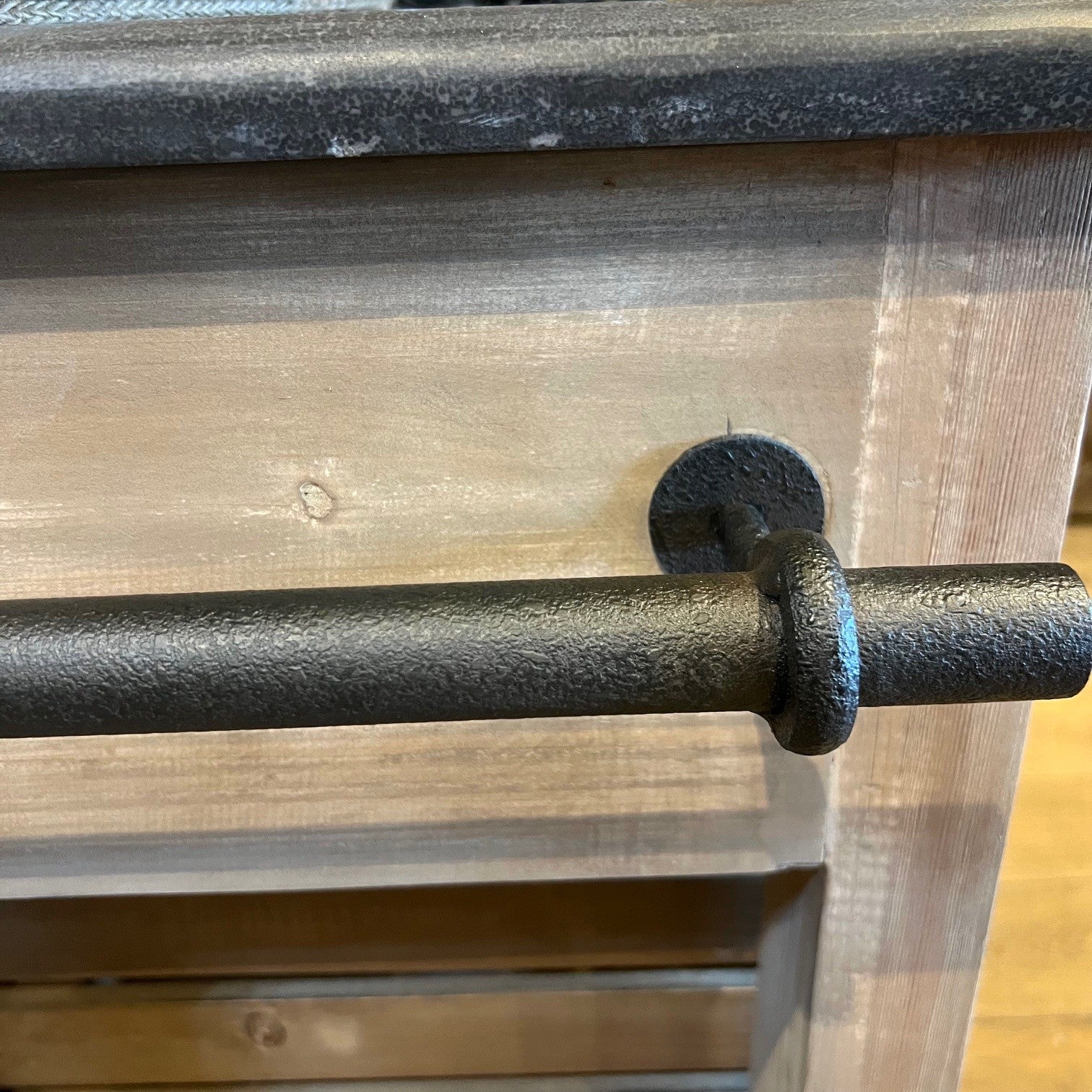 To the end of the unit is a rustic handle that can be used as a towel rail, the unit is mounted on 4 castors so you can easily move to your desired location with ease.