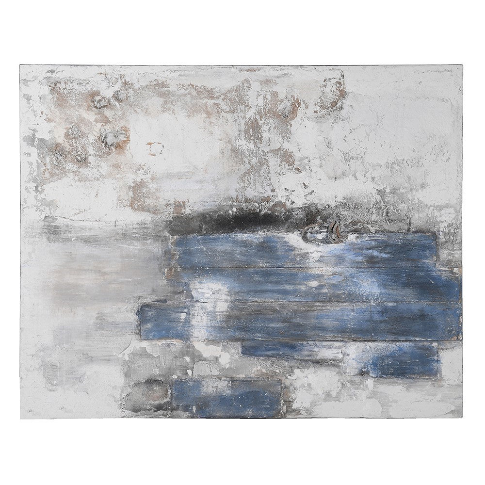 This wood effect textured painting features a sophisticated blend of blues, greys, and neutral tones, expertly crafted to add depth and character to any space. Its striking texture and subtle colour palette make it an ideal choice for a feature wall, creating a refined focal point that complements contemporary and classic interiors alike.